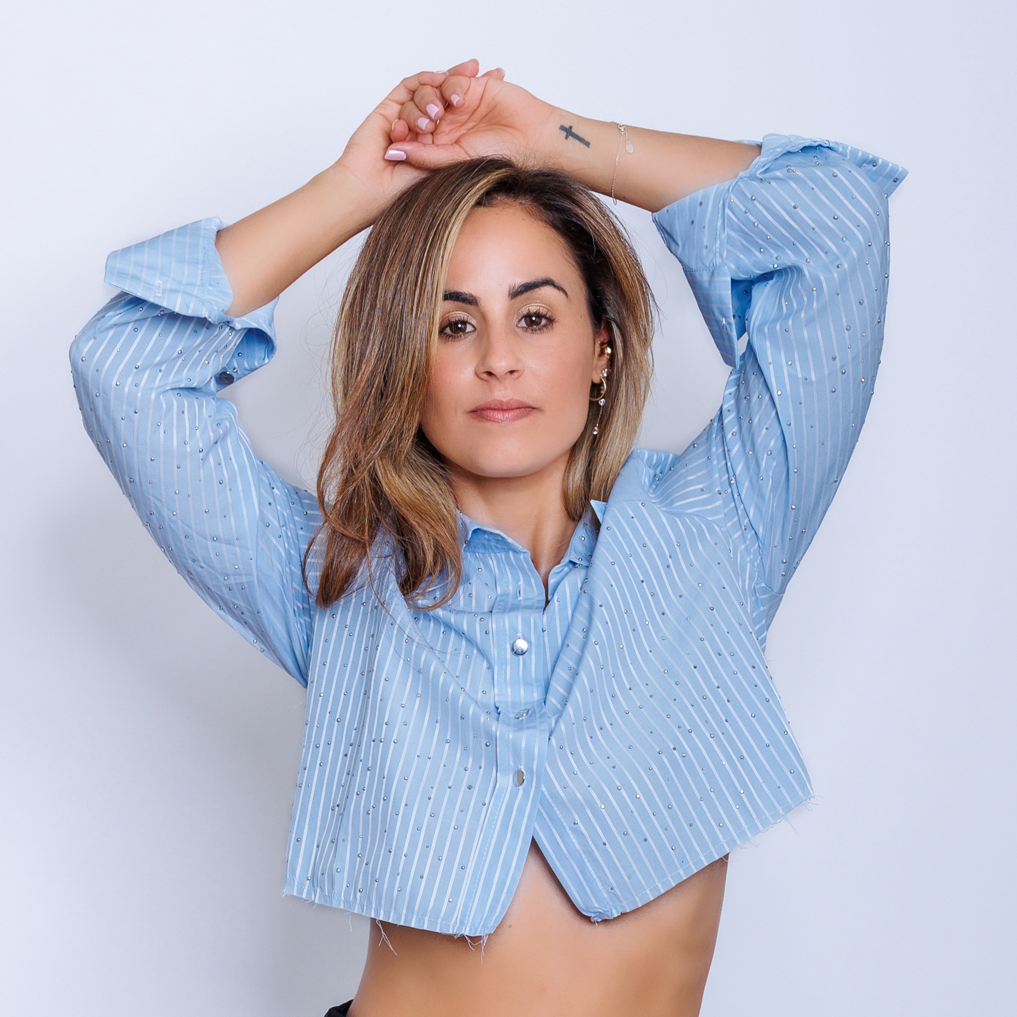 White and blue crop top cantidad